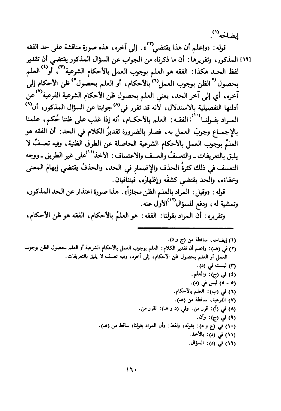 قَوْلُهُ: «وَاعْلَمْ أَنَّ هَذَا يَقْتَضِي» . إِلَى آخِرِهِ، هَذِهِ صُورَةُ مُنَاقَشَةٍ عَلَى حَدِّ الْفِقْهِ الْمَذْكُورِ، وَتَقْرِيرُهَا: أَنَّ مَا ذَكَرْنَاهُ مِنَ الْجَوَابِ عَنِ السُّؤَالِ الْمَذْكُورِ يَقْتَضِي أَنَّ تَقْدِيرَ لَفْظِ الْحَدِّ هَكَذَا: الْفِقْهُ هُوَ الْعِلْمُ بِوُجُوبِ الْعَمَلِ بِالْأَحْكَامِ الشَّرْعِيَّةِ، أَوِ الْعِلْمُ بِحُصُولِ الظَّنِّ بِوُجُوبِ الْعَمَلِ بِالْأَحْكَامِ، أَوِ الْعِلْمُ بِحُصُولِ ظَنِّ الْأَحْكَامِ إِلَى آخِرِهِ، أَيْ إِلَى آخِرِ الْحَدِّ، يَعْنِي الْعِلْمَ بِحُصُولِ ظَنِّ الْأَحْكَامِ الشَّرْعِيَّةِ الْفَرْعِيَّةِ عَنْ أَدِلَّتِهَا التَّفْصِيلِيَّةِ بِالِاسْتِدْلَالِ، لِأَنَّهُ قَدْ تَقَرَّرَ فِي جَوَابِنَا عَنِ السُّؤَالِ الْمَذْكُورِ، أَنَّ الْمُرَادَ بِقَوْلِنَا: الْفِقْهُ: الْعِلْمُ بِالْأَحْكَامِ، أَنَّهُ إِذَا غَلَبَ عَلَى ظَنِّنَا حُكْمٌ، عَلِمْنَا بِالْإِجْمَاعِ وُجُوبَ الْعَمَلِ بِهِ، فَصَارَ بِالضَّرُورَةِ تَقْدِيرُ الْكَلَامِ فِي الْحَدِّ: أَنَّ الْفِقْهَ هُوَ الْعِلْمُ بِوُجُوبِ الْعَمَلِ بِالْأَحْكَامِ الشَّرْعِيَّةِ الْحَاصِلَةِ عَنِ الطُّرُقِ الظَّنِّيَّةِ، وَفِيهِ تَعَسُّفٌ لَا يَلِيقُ بِالتَّعْرِيفَاتِ - وَالتَّعَسُّفُ وَالْعَسْفُ وَالِاعْتِسَافُ: الْأَخْذُ عَلَى غَيْرِ الطَّرِيقِ - وَوَجْهُ التَّعَسُّفِ فِي ذَلِكَ كَثْرَةُ الْحَذْفِ وَالْإِضْمَارِ فِي الْحَدِّ، وَالْحَذْفُ يَقْتَضِي إِبْهَامَ الْمَعْنَى وَخَفَاءَهُ، وَالْحَدُّ يَقْتَضِي كَشْفَهُ وَإِظْهَارَهُ، فَيَتَنَافَيَانِ.