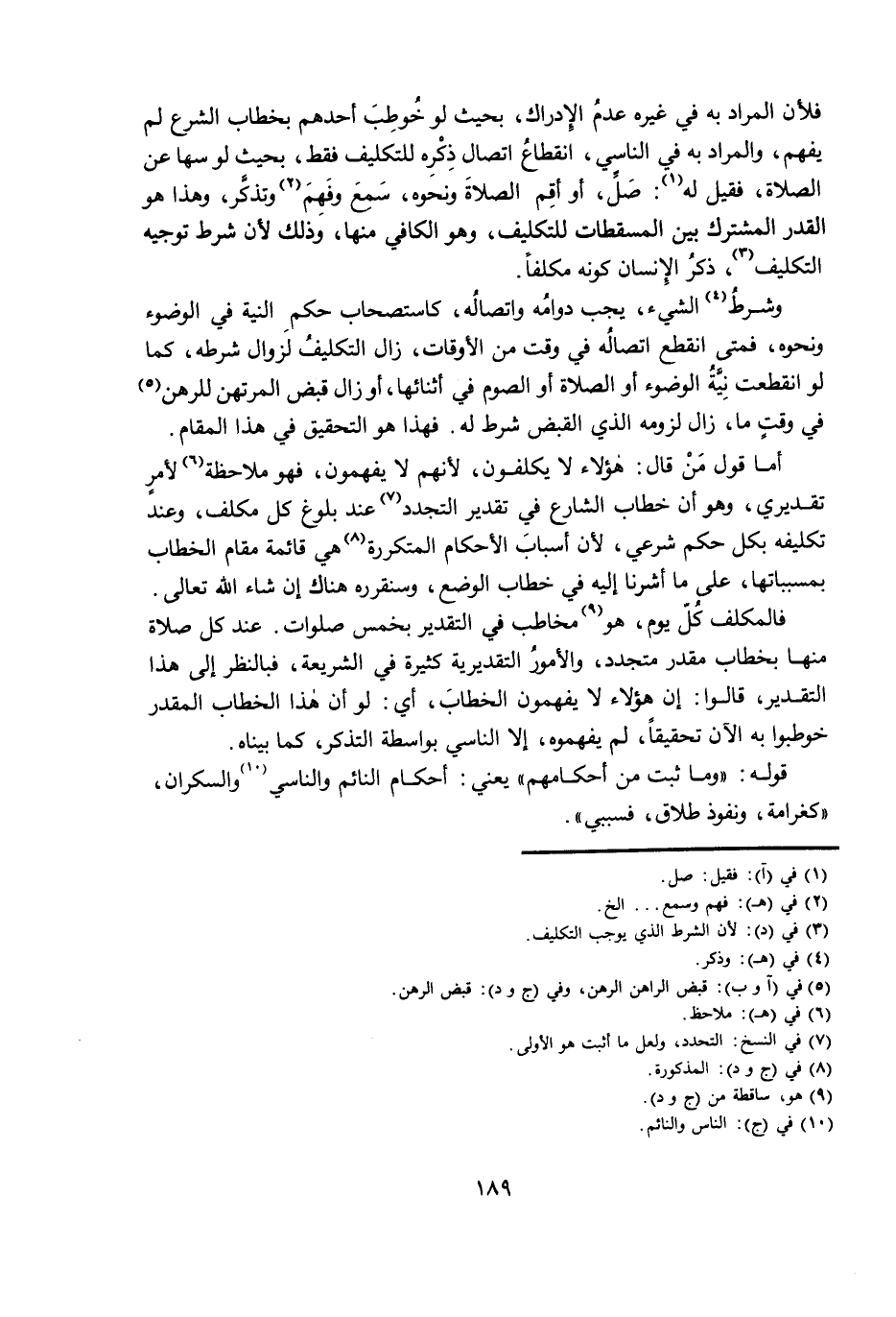 فَالْمُكَلَّفُ كُلَّ يَوْمٍ، هُوَ مُخَاطَبٌ فِي التَّقْدِيرِ بِخَمْسِ صَلَوَاتٍ. عِنْدَ كُلِّ صَلَاةٍ مِنْهَا بِخِطَابٍ مُقَدَّرٍ مُتَجَدِّدٍ، وَالْأُمُورُ التَّقْدِيرِيَّةُ كَثِيرَةٌ فِي الشَّرِيعَةِ، فَبِالنَّظَرِ إِلَى هَذَا التَّقْدِيرِ، قَالُوا: إِنَّ هَؤُلَاءِ لَا يَفْهَمُونَ الْخِطَابَ، أَيْ: لَوْ أَنَّ هَذَا الْخِطَابَ الْمُقَدَّرَ خُوطِبُوا بِهِ الْآنَ تَحْقِيقًا، لَمْ يَفْهَمُوهُ، إِلَّا النَّاسِيَ بِوَاسِطَةِ التَّذَكُّرِ كَمَا بَيَّنَّاهُ.