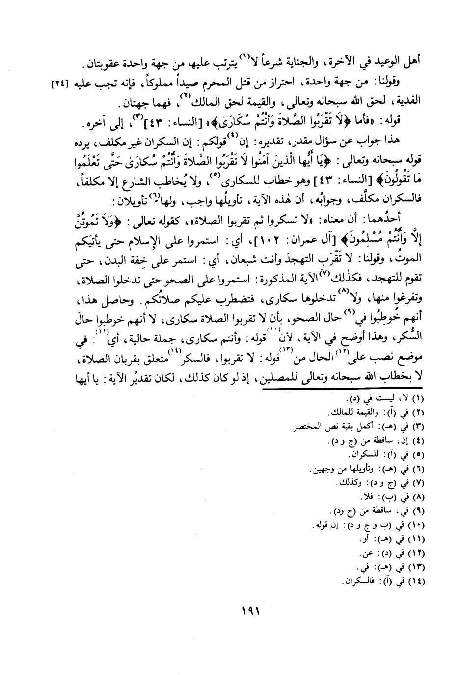 هَذَا جَوَابٌ عَنْ سُؤَالٍ مُقَدَّرٍ، تَقْدِيرُهُ: إِنَّ قَوْلَكُمْ: إِنَّ السَّكْرَانَ غَيْرُ مُكَلَّفٍ، يَرُدُّهُ قَوْلُهُ سُبْحَانَهُ وَتَعَالَى: {يَا أَيُّهَا الَّذِينَ آمَنُوا لَا تَقْرَبُوا الصَّلَاةَ وَأَنْتُمْ سُكَارَى حَتَّى تَعْلَمُوا مَا تَقُولُونَ} [النِّسَاءِ: 43] وَهُوَ خِطَابٌ لِلسُّكَارَى، وَلَا يُخَاطِبُ الشَّارِعُ إِلَّا مُكَلَّفًا، فَالسَّكْرَانُ مُكَلَّفٌ، وَجَوَابُهُ، أَنَّ هَذِهِ الْآيَةَ، تَأْوِيلُهَا وَاجِبٌ، وَلَهَا تَأْوِيلَانِ: