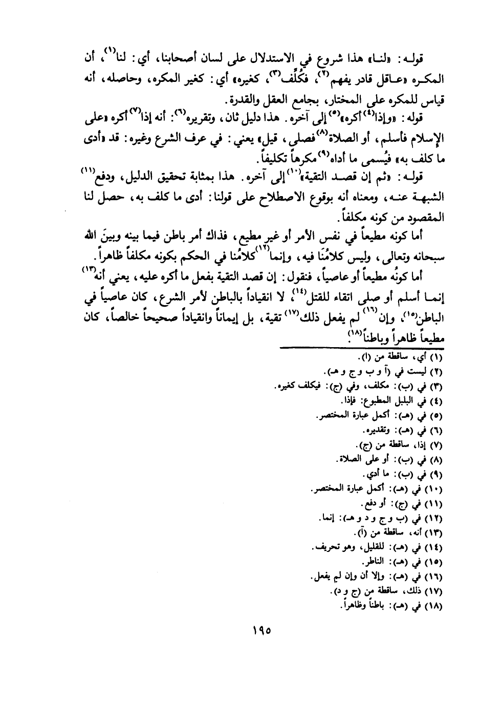 أَمَّا كَوْنُهُ مُطِيعًا فِي نَفْسِ الْأَمْرِ أَوْ غَيْرَ مُطِيعٍ، فَذَاكَ أَمْرٌ بَاطِنٌ فِيمَا بَيْنَهُ وَبَيْنَ اللَّهِ سُبْحَانَهُ وَتَعَالَى، وَلَيْسَ كَلَامُنَا فِيهِ، وَإِنَّمَا كَلَامُنَا فِي الْحُكْمِ بِكَوْنِهِ مُكَلَّفًا ظَاهِرًا.