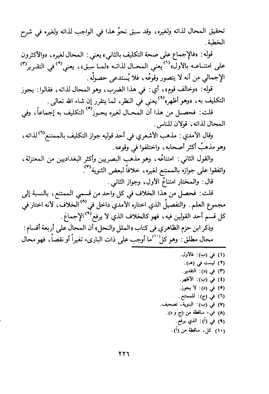 تَحْقِيقُ الْمُحَالِ لِذَاتِهِ وَلِغَيْرِهِ، وَقَدْ سَبَقَ نَحْوُ هَذَا فِي الْوَاجِبِ لِذَاتِهِ وَلِغَيْرِهِ فِي شَرْحِ الْخُطْبَةِ.