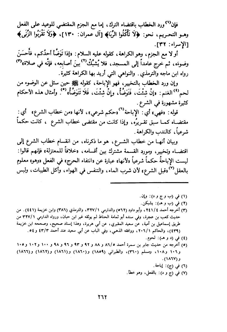 وَإِنْ وَرَدَ الْخِطَابُ بِالتَّخْيِيرِ، فَهُوَ الْإِبَاحَةُ، كَقَوْلِهِ - صَلَّى اللَّهُ عَلَيْهِ وَسَلَّمَ - حِينَ سُئِلَ عَنِ الْوُضُوءِ مِنْ لَحْمِ الْغَنَمِ: إِنْ شِئْتَ، فَتَوَضَّأْ، وَإِنْ شِئْتَ، فَلَا تَتَوَضَّأْ وَأَمْثَالُ هَذِهِ الْأَحْكَامِ كَثِيرَةٌ مَشْهُورَةٌ فِي الشَّرْعِ.