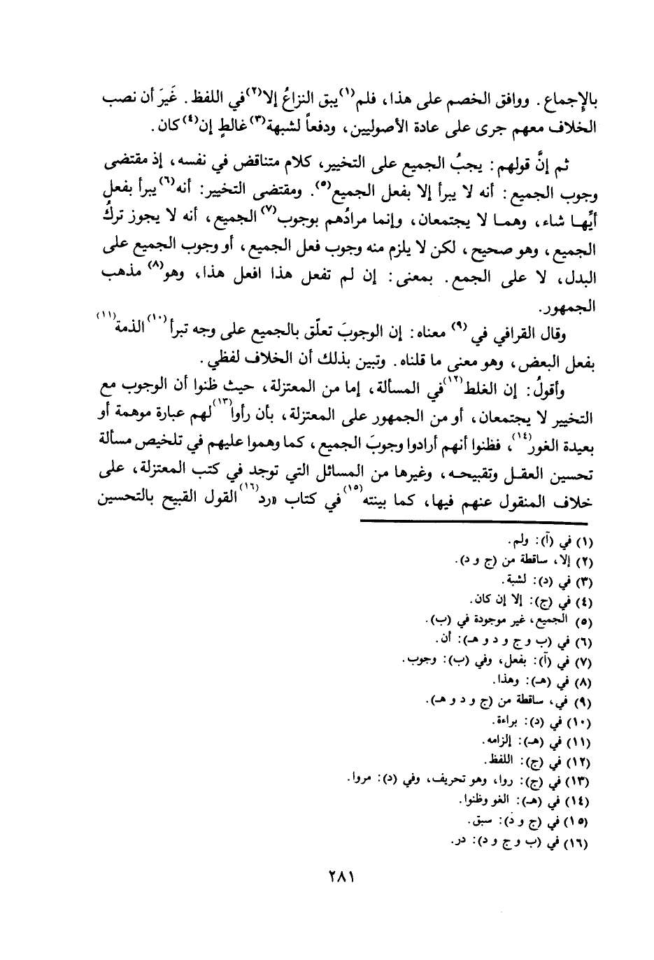 وَأَقُولُ: إِنَّ الْغَلَطَ فِي الْمَسْأَلَةِ، إِمَّا مِنَ الْمُعْتَزِلَةِ، حَيْثُ ظَنُّوا أَنَّ الْوُجُوبَ مَعَ التَّخْيِيرِ لَا يَجْتَمِعَانِ، أَوْ مِنَ الْجُمْهُورِ عَلَى الْمُعْتَزِلَةِ، بِأَنْ رَأَوْا لَهُمْ عِبَارَةً مُوهِمَةً أَوْ بَعِيدَةَ الْغَوْرِ، فَظَنُّوا أَنَّهُمْ أَرَادُوا وُجُوبَ الْجَمِيعِ، كَمَا وَهَّمُوا عَلَيْهِمْ فِي تَلْخِيصِ مَسْأَلَةِ تَحْسِينِ الْعَقْلِ وَتَقْبِيحِهِ، وَغَيْرِهَا مِنَ الْمَسَائِلِ الَّتِي تُوجَدُ فِي كُتُبِ الْمُعْتَزِلَةِ، عَلَى خِلَافِ الْمَنْقُولِ عَنْهُمْ فِيهَا، كَمَا بَيَّنْتُهُ فِي كِتَابِ «رَدِّ الْقَوْلِ الْقَبِيحِ بِالتَّحْسِينِ
