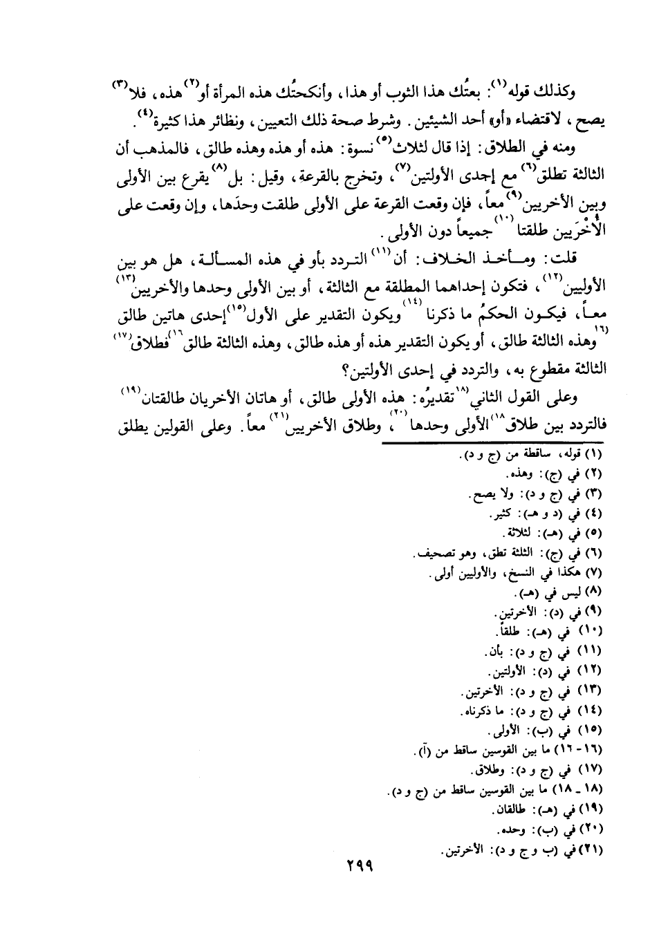قُلْتُ: وَمَأْخَذُ الْخِلَافِ: أَنَّ التَّرَدُّدَ بِأَوْ فِي هَذِهِ الْمَسْأَلَةِ، هَلْ هُوَ بَيْنَ الْأُولَيَيْنِ، فَتَكُونُ إِحْدَاهُمَا الْمُطَلَّقَةَ مَعَ الثَّالِثَةِ، أَوْ بَيْنَ الْأُولَى وَحْدَهَا وَالْأُخْرَيَيْنِ مَعًا، فَيَكُونُ الْحُكْمُ مَا ذَكَرْنَا وَيَكُونُ التَّقْدِيرُ عَلَى الْأَوَّلِ إِحْدَى هَاتَيْنِ طَالِقٌ وَهَذِهِ الثَّالِثَةُ طَالِقٌ، أَوْ يَكُونُ التَّقْدِيرُ هَذِهِ أَوْ هَذِهِ الثَّالِثَةُ طَالِقٌ، وَهَذِهِ الثَّالِثَةُ طَالِقٌ فَطَلَاقُ الثَّالِثَةِ مَقْطُوعٌ بِهِ، وَالتَّرَدُّدُ فِي إِحْدَى الْأُولَتَيْنِ؟