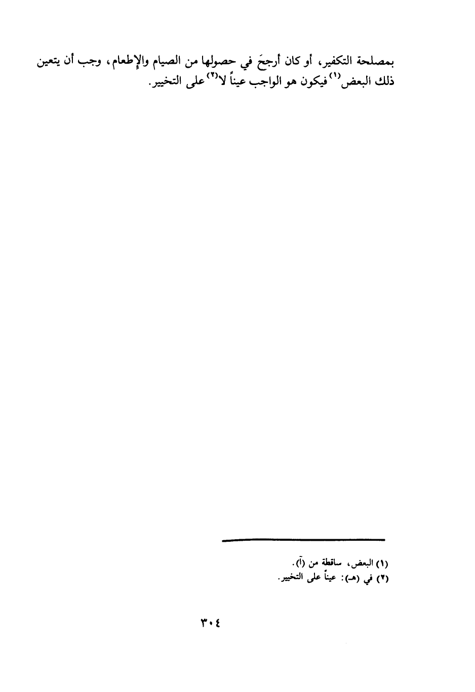 بِمَصْلَحَةِ التَّكْفِيرِ، أَوْ كَانَ أَرْجَحُ فِي حُصُولِهَا مِنَ الصِّيَامِ وَالْإِطْعَامِ، وَجَبَ أَنْ يَتَعَيَّنَ ذَلِكَ الْبَعْضُ فَيَكُونُ هُوَ الْوَاجِبَ عَيْنًا لَا عَلَى التَّخْيِيرِ.