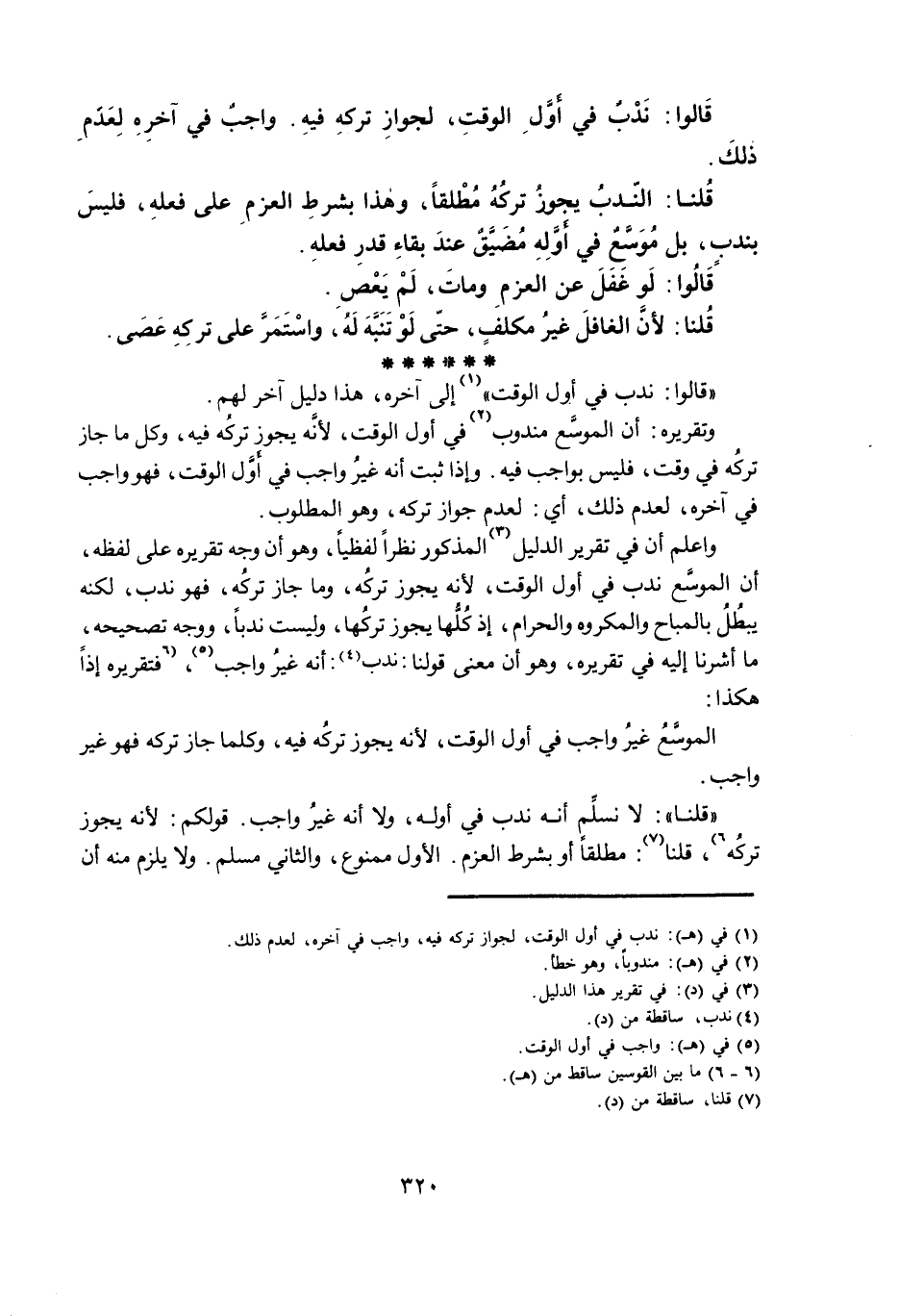 وَاعْلَمْ أَنَّ فِي تَقْرِيرِ الدَّلِيلِ الْمَذْكُورِ نَظَرًا لَفْظِيًّا، وَهُوَ أَنَّ وَجْهَ تَقْرِيرِهِ عَلَى لَفْظِهِ، أَنَّ الْمُوَسَّعَ نَدْبٌ فِي أَوَّلِ الْوَقْتِ، لِأَنَّهُ يَجُوزُ تَرْكُهُ، وَمَا جَازَ تَرْكُهُ، فَهُوَ نَدْبٌ، لَكِنَّهُ يَبْطُلُ بِالْمُبَاحِ وَالْمَكْرُوهِ وَالْحَرَامِ، إِذْ كُلُّهَا يَجُوزُ تَرْكُهَا، وَلَيْسَتْ نَدْبًا، وَوَجْهُ تَصْحِيحِهِ، مَا أَشَرْنَا إِلَيْهِ فِي تَقْرِيرِهِ، وَهُوَ أَنَّ مَعْنَى قَوْلِنَا: نَدْبٌ: أَنَّهُ غَيْرُ وَاجِبٍ، فَتَقْرِيرُهُ إِذًا هَكَذَا: