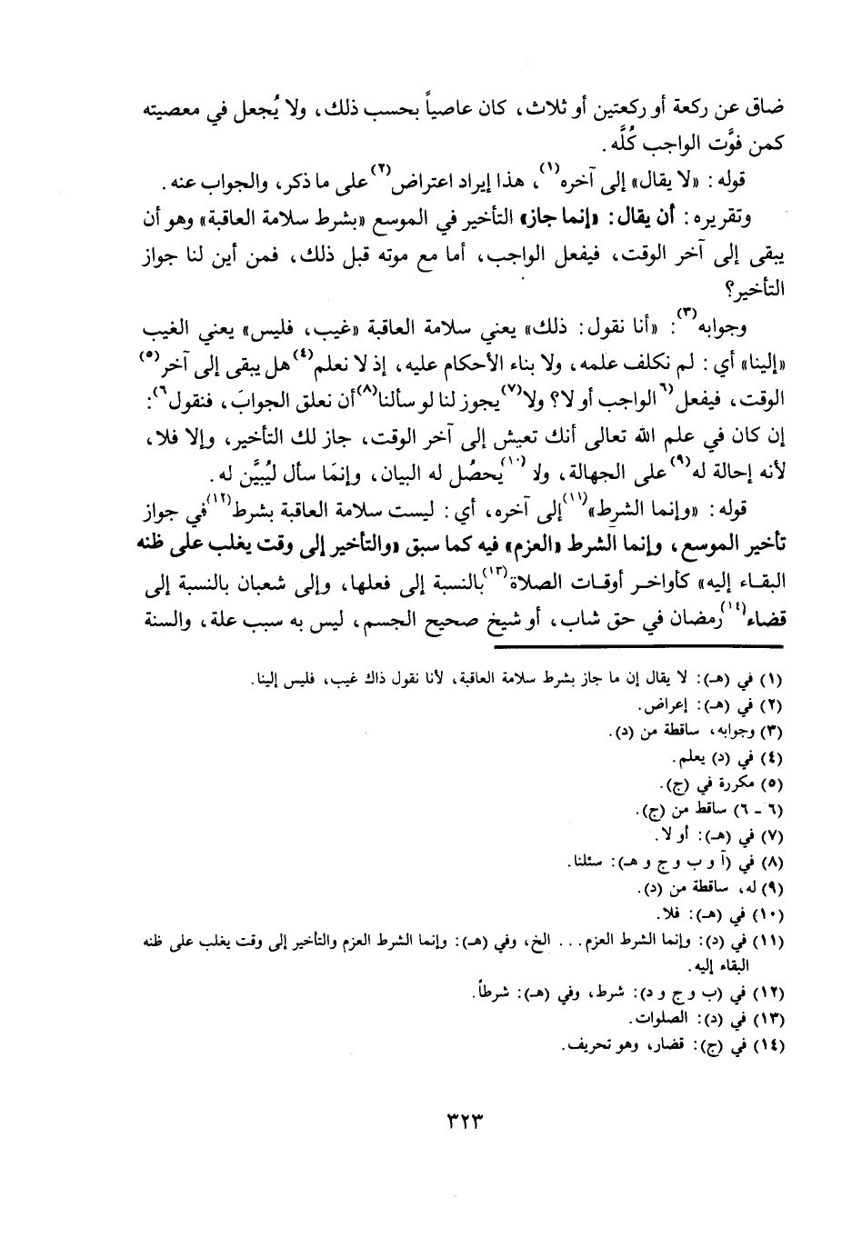 وَتَقْرِيرُهُ: أَنْ يُقَالَ: " إِنَّمَا جَازَ " التَّأْخِيرُ فِي الْمُوَسَّعِ " بِشَرْطِ سَلَامَةِ الْعَاقِبَةِ " وَهُوَ أَنْ يَبْقَى إِلَى آخِرِ الْوَقْتِ، فَيَفْعَلُ الْوَاجِبَ، أَمَّا مَعَ مَوْتِهِ قَبْلَ ذَلِكَ، فَمِنْ أَيْنَ لَنَا جَوَازُ التَّأْخِيرِ؟