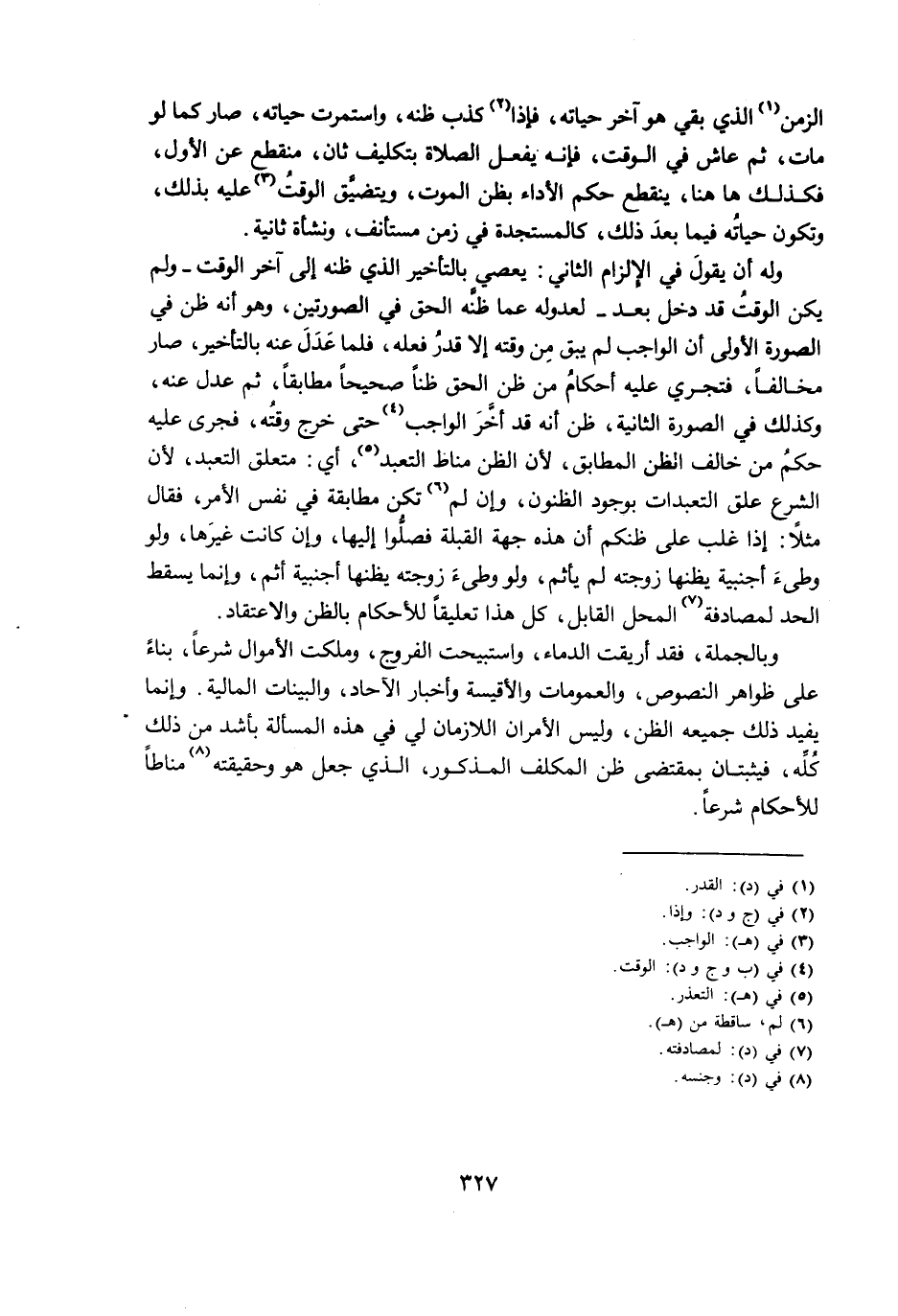وَبِالْجُمْلَةِ، فَقَدْ أُرِيقَتِ الدِّمَاءُ، وَاسْتُبِيحَتِ الْفُرُوجُ، وَمُلِكَتِ الْأَمْوَالُ شَرْعًا، بِنَاءً عَلَى ظَوَاهِرِ النُّصُوصِ، وَالْعُمُومَاتِ وَالْأَقْيِسَةِ وَأَخْبَارِ الْآحَادِ، وَالْبَيِّنَاتِ الْمَالِيَّةِ. وَإِنَّمَا يُفِيدُ ذَلِكَ جَمِيعُهُ الظَّنَّ، وَلَيْسَ الْأَمْرَانِ اللَّازِمَانِ لِي فِي هَذِهِ الْمَسْأَلَةِ بِأَشَدَّ مِنْ ذَلِكَ كُلِّهِ، فَيَثْبُتَانِ بِمُقْتَضَى ظَنِّ الْمُكَلَّفِ الْمَذْكُورِ، الَّذِي جُعِلَ هُوَ وَحَقِيقَتُهُ مَنَاطًا لِلْأَحْكَامِ شَرْعًا.