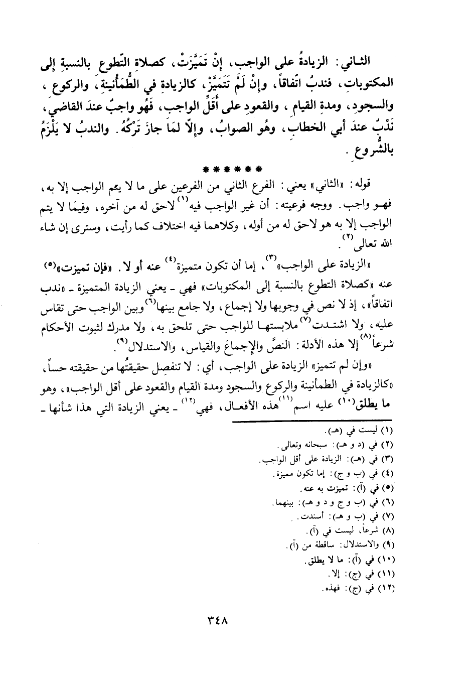 الثَّانِي: الزِّيَادَةُ عَلَى الْوَاجِبِ، إِنْ تَمَيَّزَتْ، كَصَلَاةِ التَّطَوُّعِ بِالنِّسْبَةِ إِلَى الْمَكْتُوبَاتِ، فَنَدْبٌ اتِّفَاقًا، وَإِنْ لَمْ تَتَمَيَّزْ، كَالزِّيَادَةِ فِي الطُّمَأْنِينَةِ، وَالرُّكُوعِ، وَالسُّجُودِ، وَمُدَّةِ الْقِيَامِ، وَالْقُعُودِ عَلَى أَقَلِّ الْوَاجِبِ، فَهُوَ وَاجِبٌ عِنْدَ الْقَاضِي، نَدْبٌ عِنْدَ أَبِي الْخَطَّابِ، وَهُوَ الصَّوَابُ، وَإِلَّا لَمَا جَازَ تَرْكُهُ. وَالنَّدْبُ لَا يَلْزَمُ بِالشُّرُوعِ.
