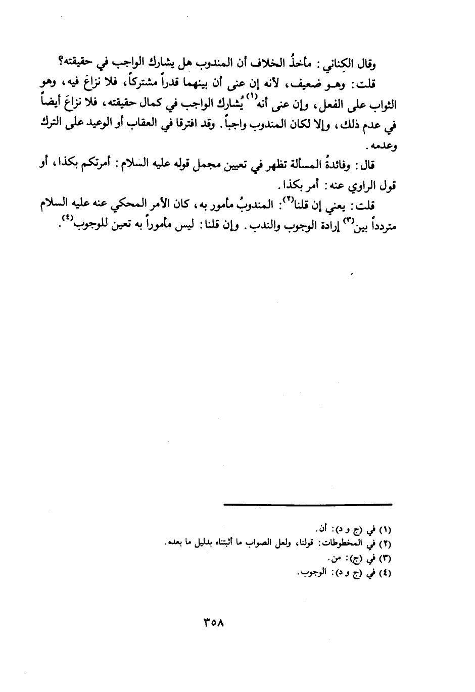 قُلْتُ: وَهُوَ ضَعِيفٌ، لِأَنَّهُ إِنْ عَنَى أَنَّ بَيْنَهُمَا قَدْرًا مُشْتَرَكًا، فَلَا نِزَاعَ فِيهِ، وَهُوَ الثَّوَابُ عَلَى الْفِعْلِ، وَإِنْ عَنَى أَنَّهُ يُشَارِكُ الْوَاجِبَ فِي كَمَالِ حَقِيقَتِهِ، فَلَا نِزَاعَ أَيْضًا فِي عَدَمِ ذَلِكَ، وَإِلَّا لَكَانَ الْمَنْدُوبُ وَاجِبًا. وَقَدِ افْتَرَقَا فِي الْعِقَابِ أَوِ الْوَعِيدِ عَلَى التَّرْكِ وَعَدَمِهِ.