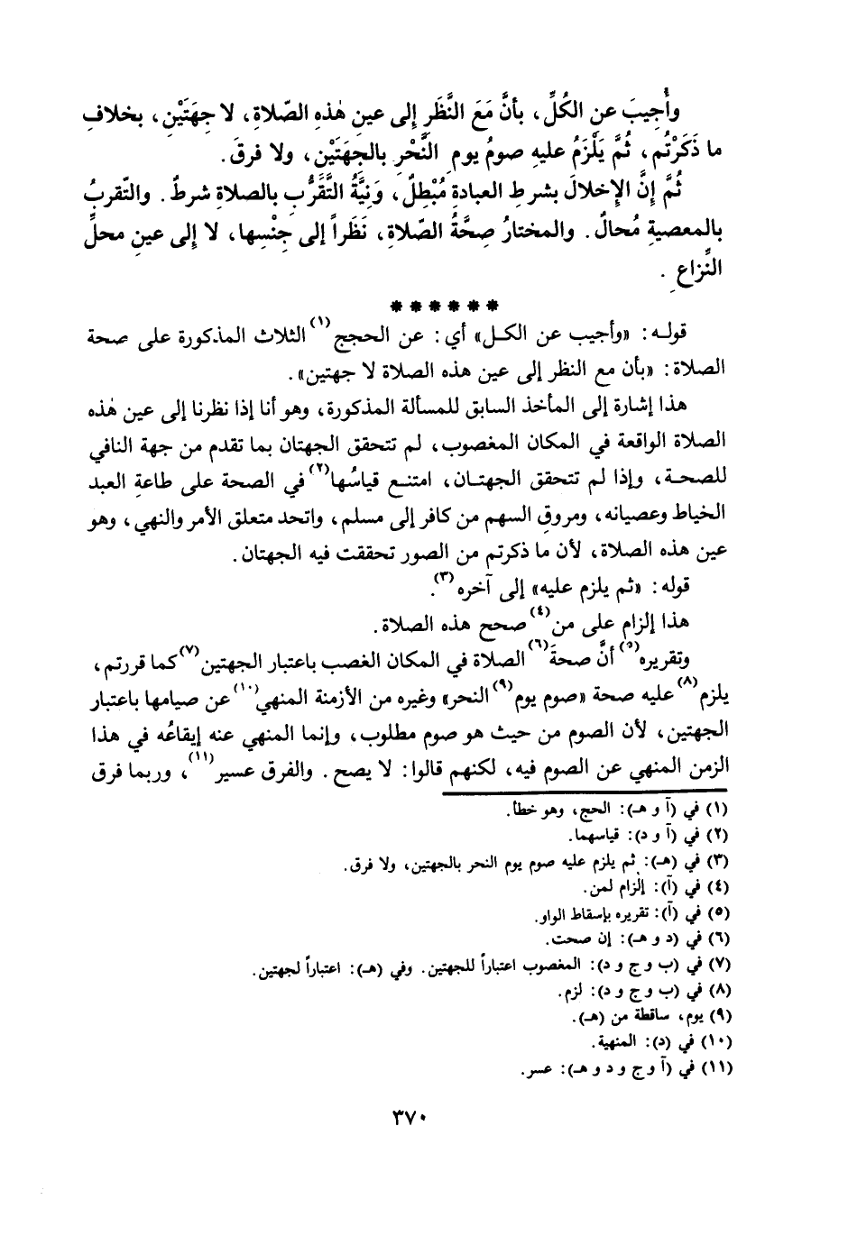 وَأُجِيبَ عَنِ الْكُلِّ، بِأَنَّ مَعَ النَّظَرِ إِلَى عَيْنِ هَذِهِ الصَّلَاةِ، لَا جِهَتَيْنِ، بِخِلَافِ مَا ذَكَرْتُمْ، ثُمَّ يَلْزَمُ عَلَيْهِ صَوْمُ يَوْمِ النَّحْرِ بِالْجِهَتَيْنِ، وَلَا فَرْقَ.
