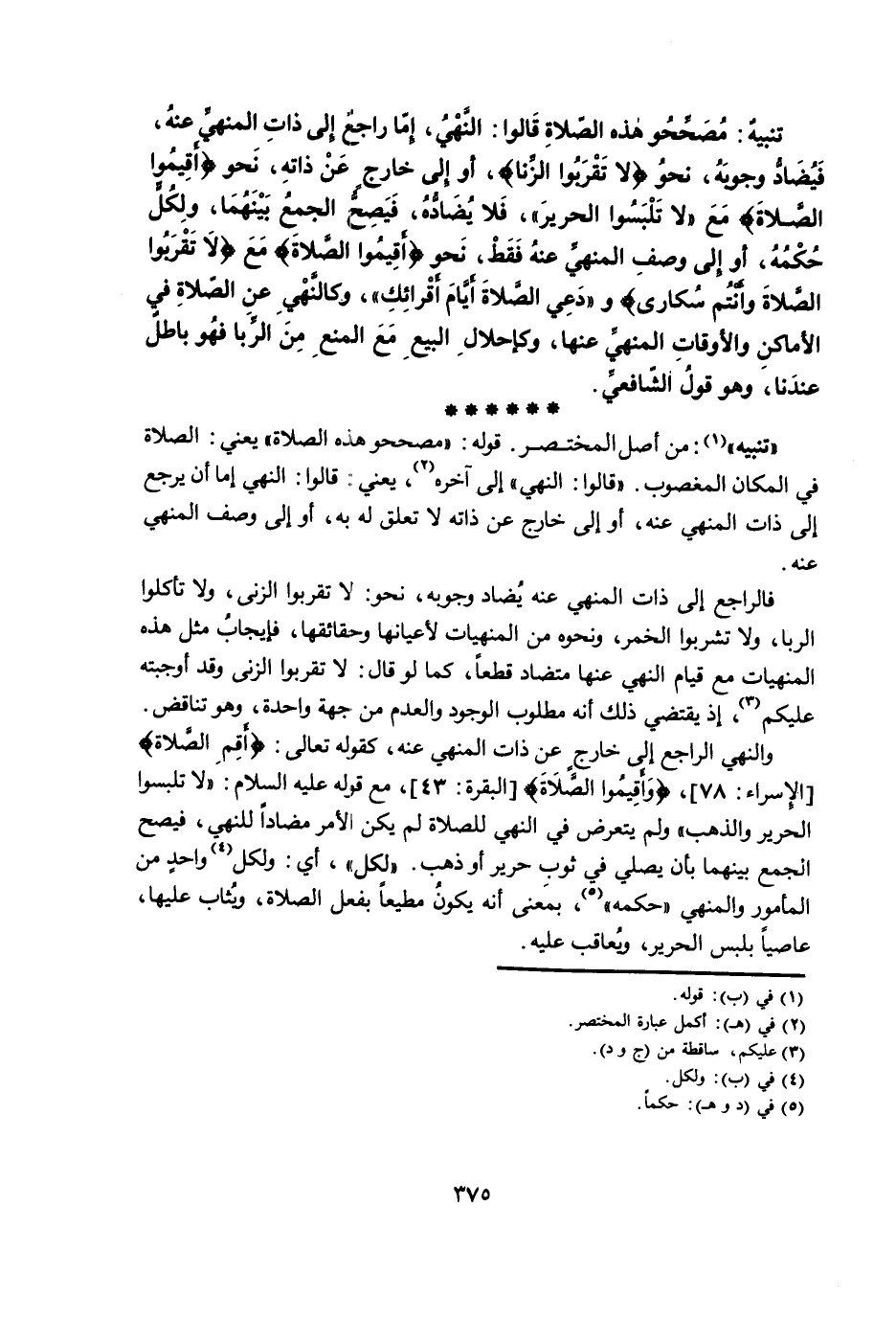 «تَنْبِيهٌ» : مِنْ أَصْلِ الْمُخْتَصَرِ. قَوْلُهُ: «مُصَحِّحُو هَذِهِ الصَّلَاةِ» يَعْنِي: الصَّلَاةَ فِي الْمَكَانِ الْمَغْصُوبِ. «قَالُوا: النَّهْيُ» إِلَى آخِرِهِ، يَعْنِي: قَالُوا: النَّهْيُ إِمَّا أَنْ يَرْجِعَ إِلَى ذَاتِ الْمَنْهِيِّ عَنْهُ، أَوْ إِلَى خَارِجٍ عَنْ ذَاتِهِ لَا تَعَلُّقَ لَهُ بِهِ، أَوْ إِلَى وَصْفِ الْمَنْهِيِّ عَنْهُ.