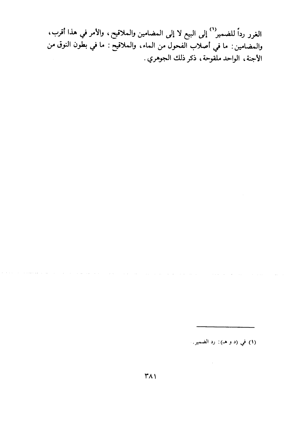 الْغَرَرَ رَدًّا لِلضَّمِيرِ إِلَى الْبَيْعِ لَا إِلَى الْمَضَامِينِ وَالْمَلَاقِيحِ، وَالْأَمْرُ فِي هَذَا أَقْرَبُ، وَالْمَضَامِينُ: مَا فِي أَصْلَابِ الْفُحُولِ مِنَ الْمَاءِ، وَالْمَلَاقِيحُ: مَا فِي بُطُونِ النُّوقِ مِنَ الْأَجِنَّةِ، الْوَاحِدُ مَلْقُوحَةٌ، ذَكَرَ ذَلِكَ الْجَوْهَرِيُّ.