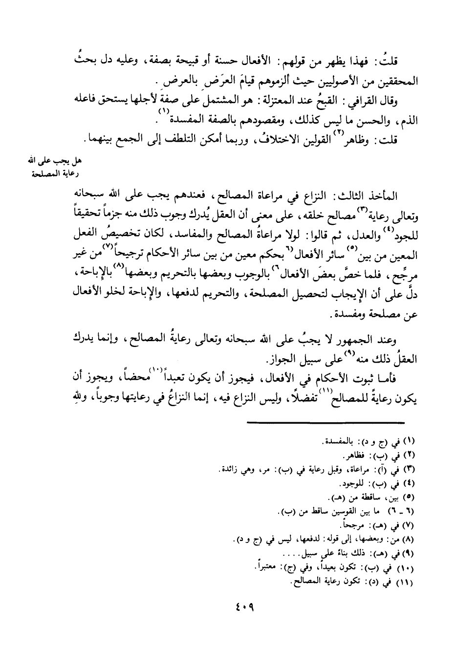 هَلْ يَجِبُ عَلَى اللَّهِ رِعَايَةُ الْمَصْلَحَةِ