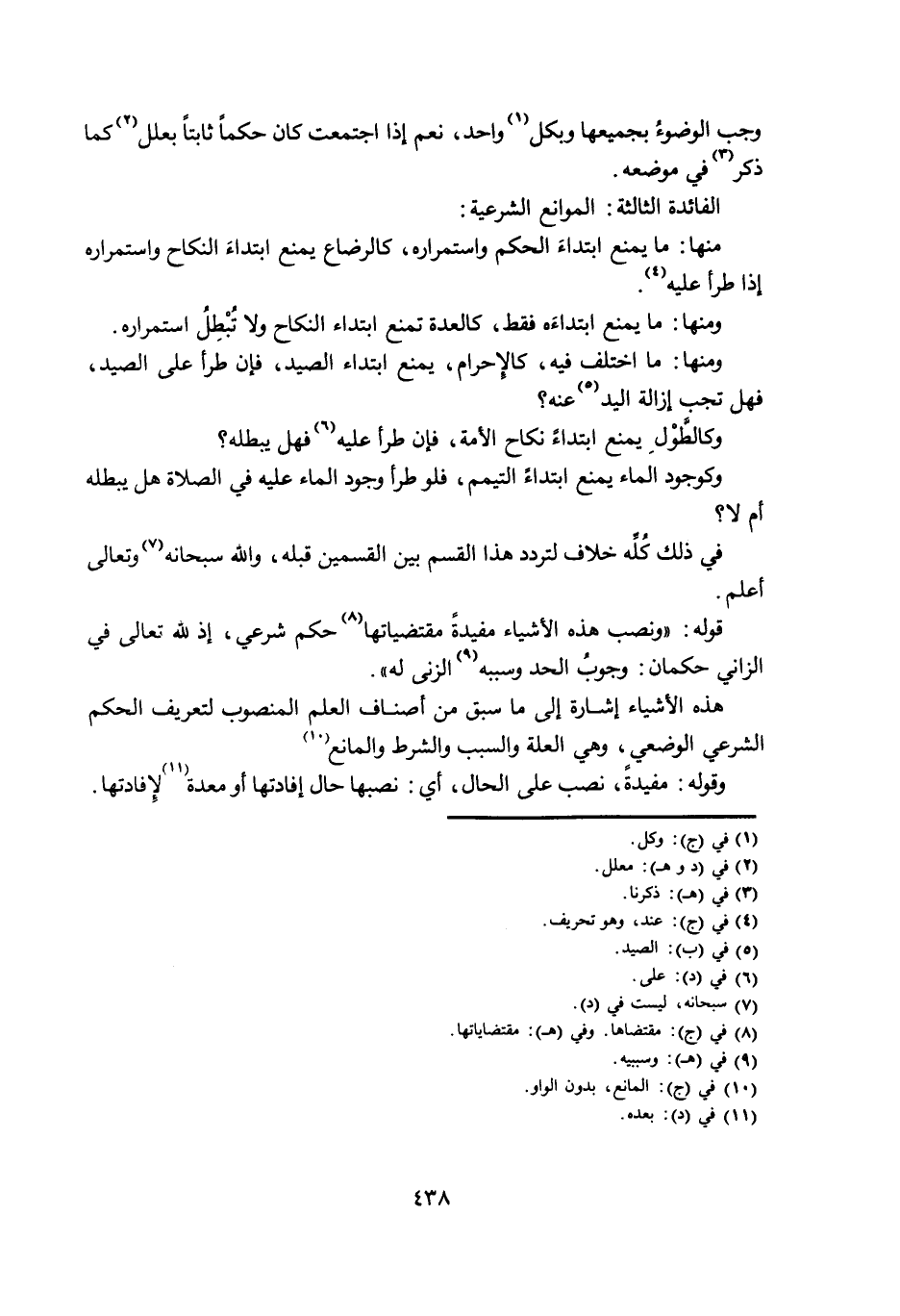 قَوْلُهُ: «وَنَصْبُ هَذِهِ الْأَشْيَاءِ مُفِيدَةً مُقْتَضَيَاتِهَا حُكْمٌ شَرْعِيٌّ، إِذْ لِلَّهِ تَعَالَى فِي الزَّانِي حُكْمَانِ: وُجُوبُ الْحَدِّ وَسَبَبُهُ الزِّنَى لَهُ» .