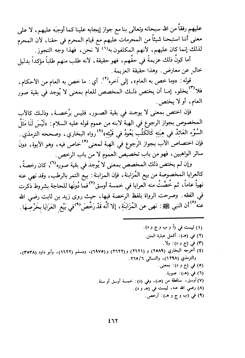 وَإِنْ لَمْ يُخْتَصَّ ذَلِكَ الْمُخَصَّصُ بِمَعْنًى لَا يُوجَدُ فِي بَقِيَّةِ صُوَرِهِ، كَانَ رُخْصَةً، كَالْعَرَايَا الْمَخْصُوصَةِ مِنْ بَيْعِ الْمُزَابَنَةِ، فَإِنَّ الْمُزَابَنَةَ: بَيْعُ التَّمْرِ بِالرُّطَبِ، وَقَدْ نُهِيَ عَنْهُ نَهْيًا عَامًّا، ثُمَّ خُصَّتْ مِنْهُ الْعَرَايَا فِي خَمْسَةِ أَوْسُقٍ فَمَا دُونَهُمَا لِلْحَاجَةِ بِشُرُوطٍ ذُكِرَتْ فِي الْفِقْهِ. وَصَرَّحَتِ الرُّوَاةُ بِلَفْظِ الرُّخْصَةِ فِيهَا، حَيْثُ رَوَى زَيْدُ بْنُ ثَابِتٍ رَضِيَ اللَّهُ عَنْهُ أَنَّ النَّبِيَّ صَلَّى اللَّهُ عَلَيْهِ وَسَلَّمَ: نَهَى عَنِ الْمُزَابَنَةِ، إِلَّا أَنَّهُ قَدْ رَخَّصَ فِي بَيْعِ الْعَرَايَا بِخَرْصِهَا
