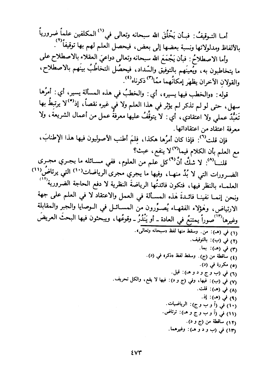 قُلْنَا: لَا شَكَّ أَنَّ كُلَّ عِلْمٍ مِنَ الْعُلُومِ، فَفِي مَسَائِلِهِ مَا يَجْرِي مَجْرَى الضَّرُورَاتِ الَّتِي لَا بُدَّ مِنْهَا، وَفِيهَا مَا يَجْرِي مَجْرَى الرِّيَاضَاتِ الَّتِي يَرْتَاضُ الْعُلَمَاءُ بِالنَّظَرِ فِيهَا، فَتَكُونُ فَائِدَتُهَا الرِّيَاضَةَ النَّظَرِيَّةَ لَا دَفْعَ الْحَاجَةِ الضَّرُورِيَّةِ وَنَحْنُ إِنَّمَا نَفَيْنَا فَائِدَةَ هَذِهِ الْمَسْأَلَةِ فِي الْعَمَلِ وَالِاعْتِقَادِ لَا فِي الْعِلْمِ عَلَى جِهَةِ الِارْتِيَاضِ، وَهَؤُلَاءِ الْفُقَهَاءُ يُصَوِّرُونَ مِنَ الْمَسَائِلِ فِي الْوَصَايَا وَالْجَبْرِ وَالْمُقَابَلَةِ وَغَيْرِهَا صُوَرًا يَمْتَنِعُ فِي الْعَادَةِ - أَوْ يَنْدُرُ - وُقُوعُهَا، وَيَبْحَثُونَ فِيهَا الْبَحْثَ الْعَرِيضَ
