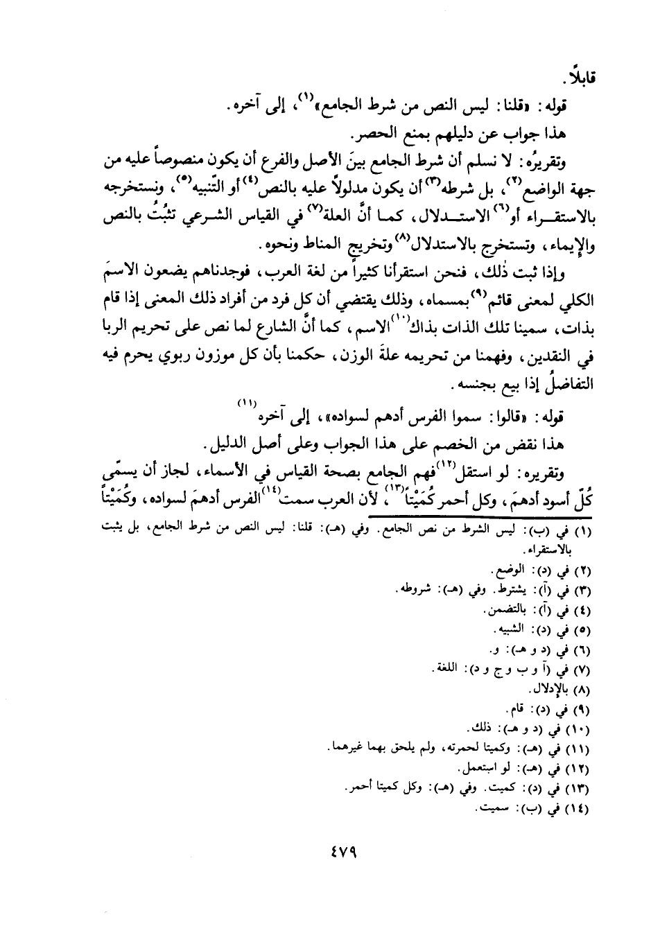 وَإِذَا ثَبَتَ ذَلِكَ، فَنَحْنُ اسْتَقْرَأْنَا كَثِيرًا مِنْ لُغَةِ الْعَرَبِ، فَوَجَدْنَاهُمْ يَضَعُونَ الِاسْمَ الْكُلِّيَّ لِمَعْنًى قَائِمٍ بِمُسَمَّاهُ، وَذَلِكَ يَقْتَضِي أَنَّ كُلَّ فَرْدٍ مِنْ أَفْرَادِ ذَلِكَ الْمَعْنَى إِذَا قَامَ بِذَاتٍ، سَمَّيْنَا تِلْكَ الذَّاتَ بِذَاكَ الِاسْمِ، كَمَا أَنَّ الشَّرْعَ لَمَا نَصَّ عَلَى تَحْرِيمِ الرِّبَا فِي النَّقْدَيْنِ، وَفَهِمْنَا مِنْ تَحْرِيمِهِ عِلَّةَ الْوَزْنِ، حَكَمْنَا بِأَنَّ كُلَّ مَوْزُونٍ رِبَوِيٍّ يَحْرُمُ فِيهِ التَّفَاضُلُ إِذَا بِيعَ بِجِنْسِهِ.