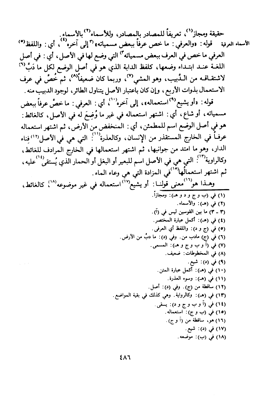 حَقِيقَةٌ وَمَجَازٌ، تَعْرِيفًا لِلْمَصَادِرِ بِالْمَصَادِرِ، وَلِلْأَسْمَاءِ بِالْأَسْمَاءِ.