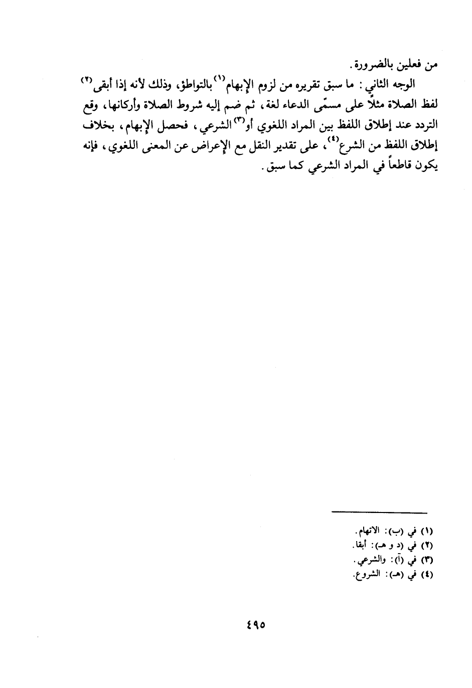 الْوَجْهُ الثَّانِي: مَا سَبَقَ تَقْرِيرُهُ مِنْ لُزُومِ الْإِبْهَامِ بِالتَّوَاطُؤِ، وَذَلِكَ لِأَنَّهُ إِذَا أَبْقَى لَفْظَ الصَّلَاةِ مَثَلًا عَلَى مُسَمَّى الدُّعَاءِ لُغَةً، ثُمَّ ضَمَّ إِلَيْهِ شُرُوطَ الصَّلَاةِ وَأَرْكَانَهَا، وَقَعَ التَّرَدُّدُ عِنْدَ إِطْلَاقِ اللَّفْظِ بَيْنَ الْمُرَادِ اللُّغَوِيِّ أَوِ الشَّرْعِيِّ، فَحَصَلَ الْإِبْهَامُ، بِخِلَافِ إِطْلَاقِ اللَّفْظِ مِنَ الشَّرْعِ، عَلَى تَقْدِيرِ النَّقْلِ مَعَ الْإِعْرَاضِ عَنِ الْمَعْنَى اللُّغَوِيِّ، فَإِنَّهُ يَكُونُ قَاطِعًا فِي الْمُرَادِ الشَّرْعِيِّ كَمَا سَبَقَ.
