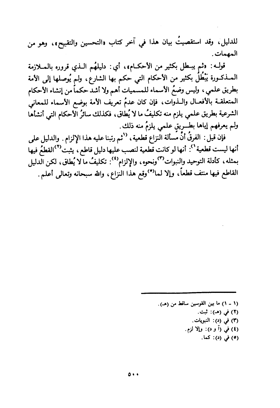 لِلدَّلِيلِ، وَقَدِ اسْتَقْصَيْتُ بَيَانَ هَذَا فِي آخِرِ كِتَابِ «التَّحْسِينِ وَالتَّقْبِيحِ» ، وَهُوَ مِنَ الْمُهِمَّاتِ.