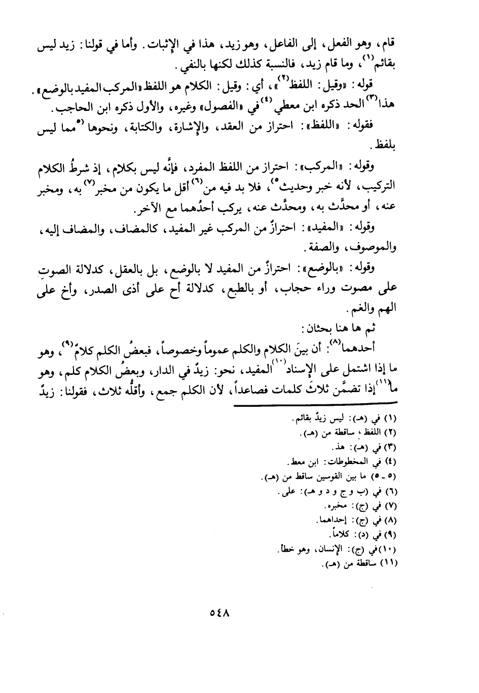 هَذَا الْحَدُّ ذَكَرَهُ ابْنُ مُعْطِي فِي " الْفُصُولِ " وَغَيْرِهِ، وَالْأَوَّلُ ذَكَرَهُ ابْنُ الْحَاجِبِ.