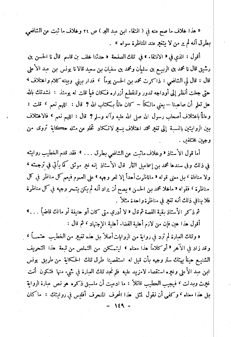 ((وتلك العبارة لم ترد في رواية من الروايات أصلاً بل هذه تغير من الخطيب حتماً وقد زاد في الآخر ((أو كلاماً هذا معناه)) ليتمكن من التملص من تبعة هذا التحريف الشنيع حينما يهتك ستر وجهه بأن قيل له استقصينا طرق تلك الحكاية من طريق يونس ابن عبد الأعلى وغيره استقصاء لا مزيد عليه فلم نجد تلك العبارة في شيء منها فتكون أنت غيرت وبدلت، فيجيب الخطيب قائلاً: ما ادعيت أن ما سبق ذكره هو نص عبارة الرواية بل هذا معناه، وكفى أن نقول لمثل هذا المحرف المنحرف أفليس في روايتك: ما كان
