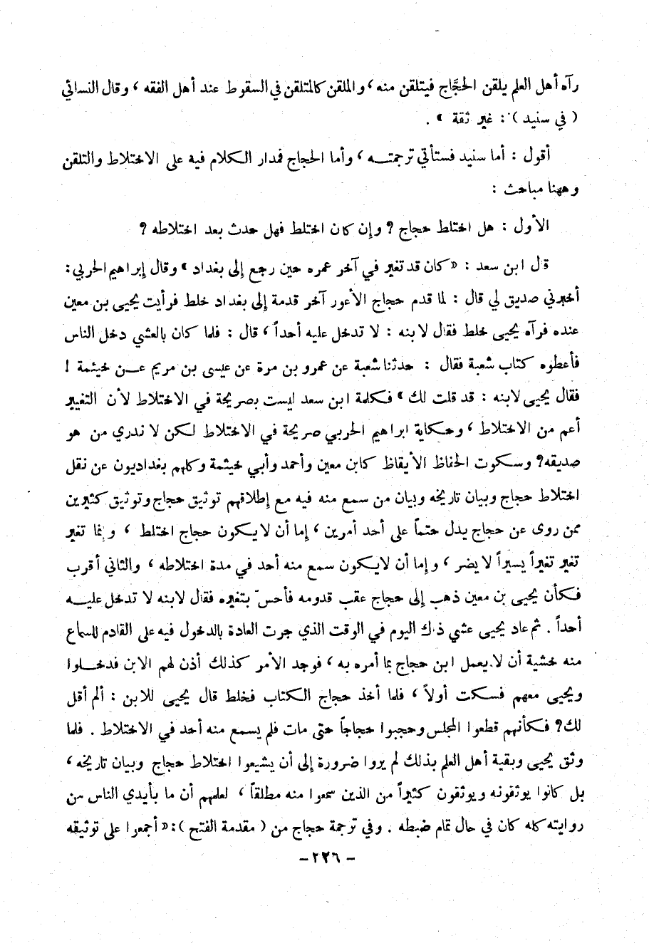 أقول: أما سنيد فستأتي ترجمته، وأما الحجاج فمدار الكلام فيه على الاختلاط والتلقن وههنا مباحث: