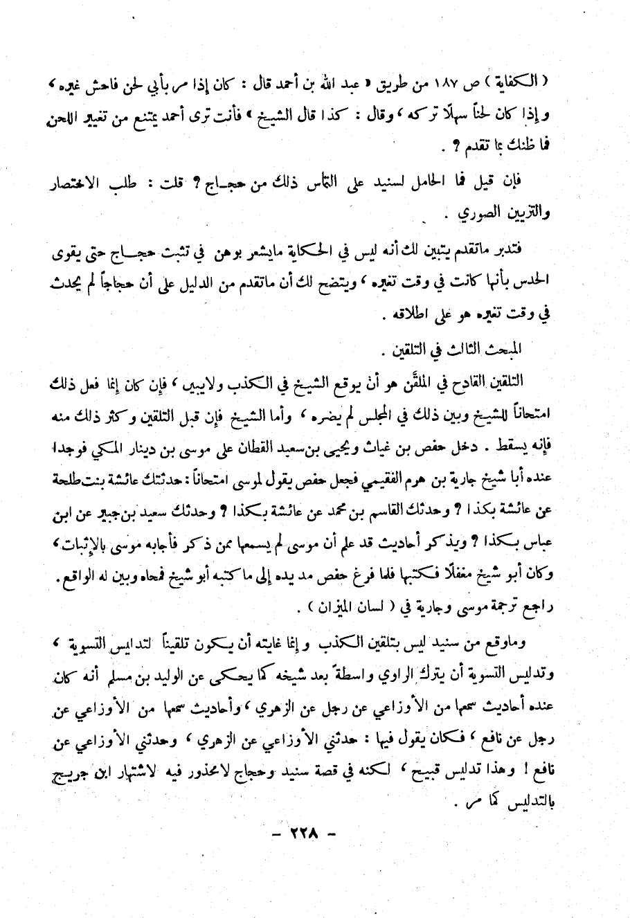 (الكفاية) ص187 من طريق ((عبد الله بن أحمد قال: كان إذا مر بأبي لحن فاحش غيره، وإذا كان لحناً سهلاً تركه، وقال: كذا قال الشيخ)) فأنت ترى أحمد يمتنع من تغيير اللحن فما ظنك بما يقدم؟.