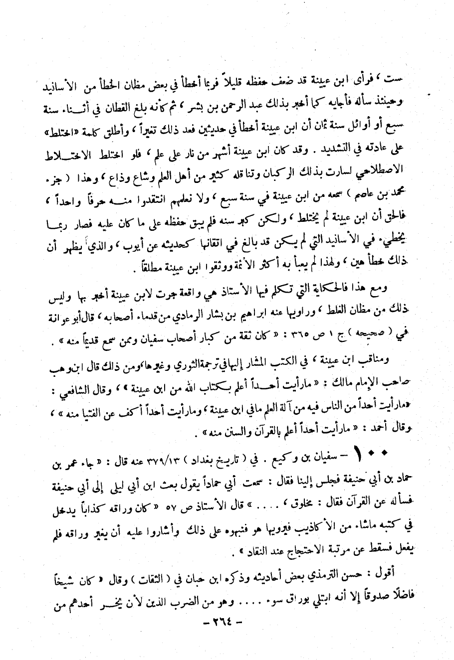 ومع هذا فالحكاية التي تكلم فيها الأستاذ هي واقعة جرت لابن عيينة أخبر بها وليس ذلك من مظان الغلط وراويها عنه إبراهيم بن بشار الرمادي من قدماء أصحابه قال أبو عوانه في ( صحيحة ) ج 1 ص 365 : (( كان ثقة من كبار أصحاب سفيان وممن سمع قديما منه )) .