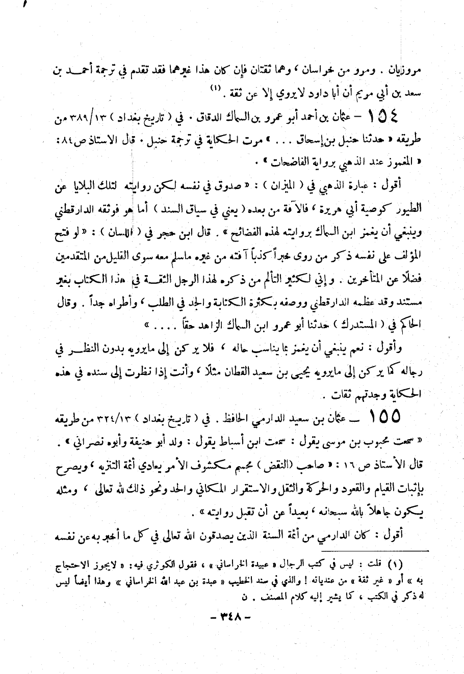 155- عثمان بن سعيد الدار مي الحافظ . في ( تاريخ بغداد ) 13 / 324 من طريقة (( سمعت منحبوب بن موسى يقول : سمعت ابن أسباط يقول ك ولد أبو حنيفة وأبوه نصراني )) .