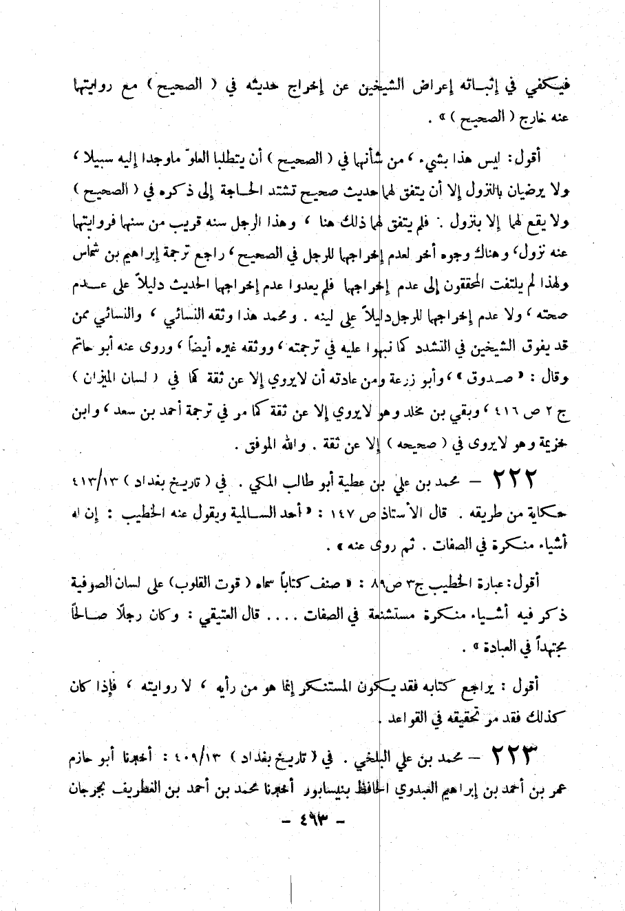 222-محمد بن علي بن عطية أبو طالب المكي . في . تاريخ بغداد ) 13 / 413 حكاية من طريقة . قال الأستاذ ص 147 : (( أحد السالمية ويقول عنه الخطيب : إن له أشياء منكرة في الصفات . ثم روى عنه )) .