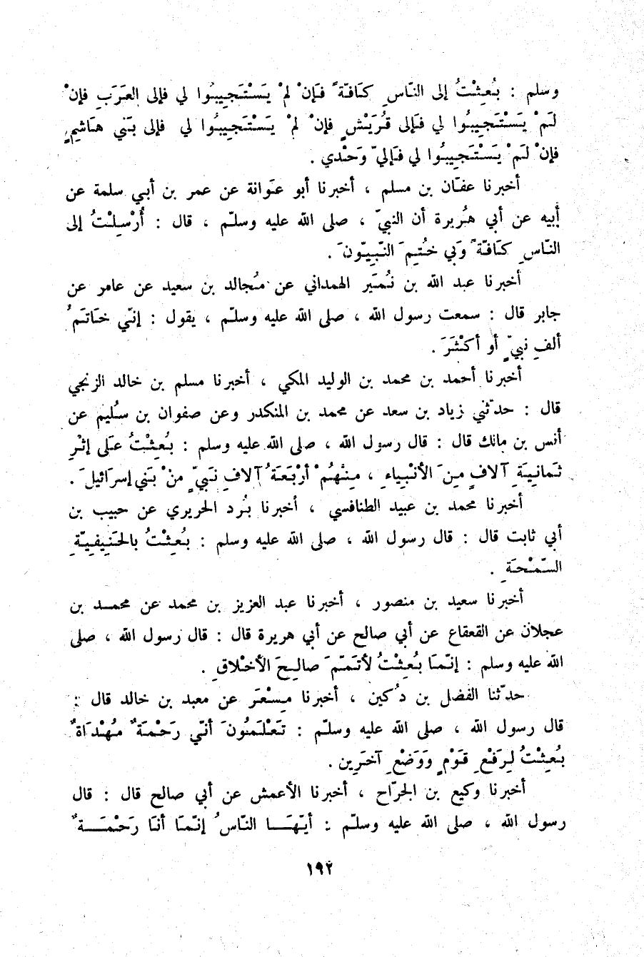 أَخْبَرَنَا أَحْمَدُ بْنُ مُحَمَّدِ بْنِ الْوَلِيدِ الْمَكِّيُّ، أَخْبَرَنَا مُسْلِمُ بْنُ خَالِدٍ الزَّنْجِيُّ قَالَ: حَدَّثَنِي زِيَادُ بْنُ سَعْدٍ، عَنْ مُحَمَّدِ بْنِ الْمُنْكَدِرِ، وَعَنْ صَفْوَانَ بْنِ سُلَيْمٍ، عَنْ أَنَسِ بْنِ مَالِكٍ قَالَ: قَالَ رَسُولُ اللَّهِ صلّى الله عليه وسلم: «§بُعِثْتُ عَلَى إِثْرِ ثَمَانِيَةِ آلَافٍ مِنَ الْأَنْبِيَاءِ مِنْهُمْ أَرْبَعَةُ آلَافِ نَبِيٍّ مِنْ بَنِي إِسْرَائِيلَ»