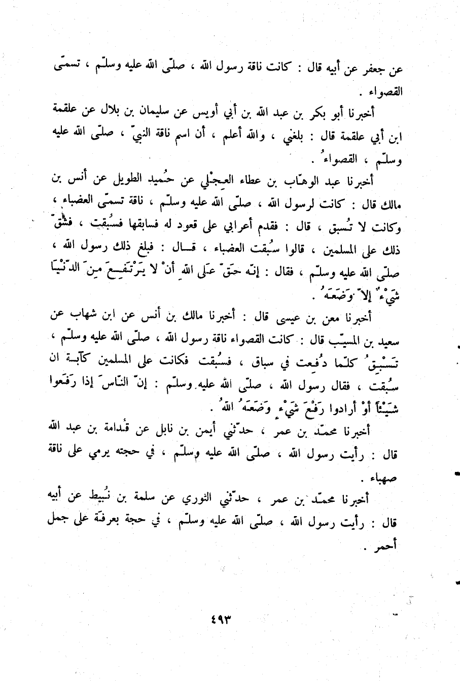 أَخْبَرَنَا أَبُو بَكْرِ بْنُ عَبْدِ اللَّهِ بْنِ أَبِي أُوَيْسٍ، عَنْ سُلَيْمَانَ بْنِ بِلَالٍ، عَنْ عَلْقَمَةَ بْنِ أَبِي عَلْقَمَةَ قَالَ: بَلَغَنِي وَاللَّهُ أَعْلَمُ أَنَّ §اسْمَ نَاقَةِ النَّبِيِّ صلّى الله عليه وسلم الْقَصْوَاءُ
