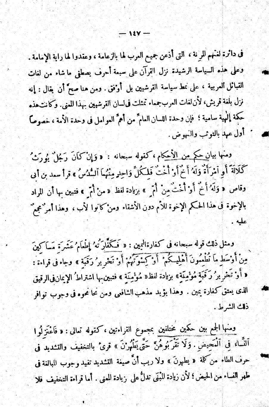 في دائرة لغتهم المرنة التي أذعن جميع العرب لها بالزعامة وعقدوا لها راية الإمامة. وعلى هذه السياسة الرشيدة نزل القرآن على سبعة أحرف يصطفي ما شاء من لغات القبائل العربية على نمط سياسةالقرشيين بل أوفق. ومن هنا صح أن يقال: إنه نزل بلغة قريش لأن لغات العرب جمعاء تمثلت في لسان القرشيين بهذا المعنى. وكانت هذه حكمة إلهية سامية فإن وحدة اللسان العام من أهم العوامل في وحدة الأمة خصوصا أول عهد بالتوثب والنهوض.