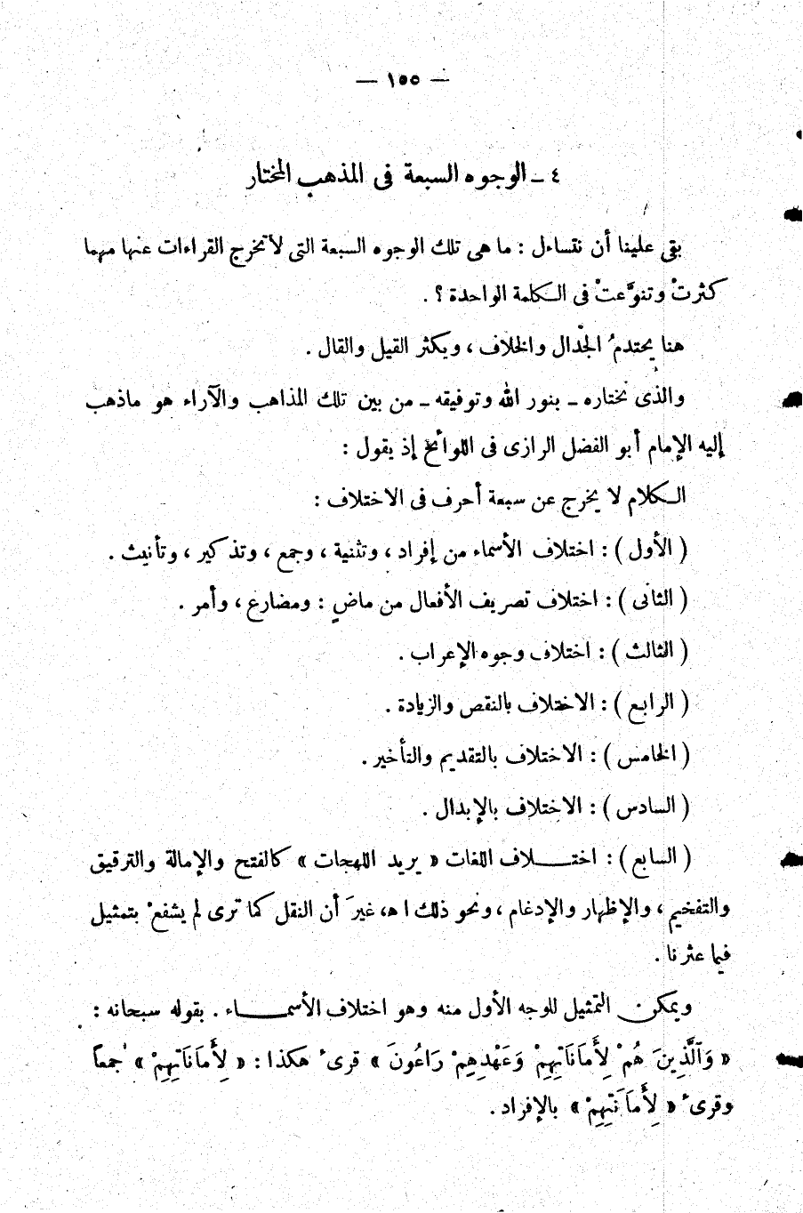 بقي علينا أن نتساءل: ما هي تلك الوجوه السبعة التي لا تخرج القراءات عنها مهما كثرت وتنوعت في الكلمة الواحدة؟.