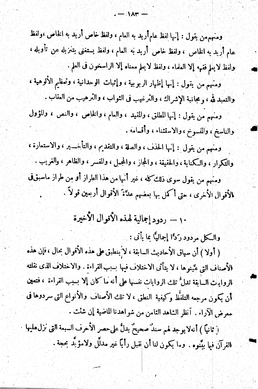 10- ردود إجمالية لهذه الأقوال الأخيرة
