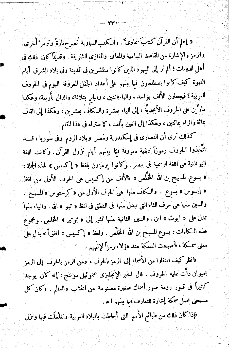 كذلك ترى أن النصارى في إسكندرية ومصر وبلاد الروم وفي سوريا قد اتخذوا الحروف رموزا دينية معروفة فيما بينهم أيام نزول القرآن. وكانت اللغة اليونانية هي اللغة الرسمية في مصر. وكانوا يرمزون بلفظ إكسيس لهذه الجملة: يسوع المسيح ابن الله المخلص فالألف من إكسيس هي الحرف الأول من لفظ إيسوس يسوع.
