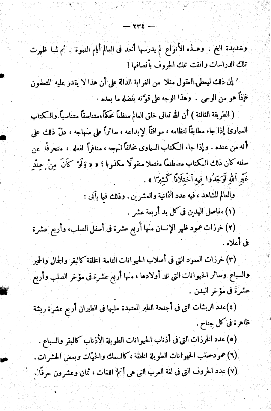 الطريقة الثالثة: أن الله تعالى خلق العالم منظما محكما متناسقا متناسبا. والكتاب السماوي إذا جاء مطابقا لنظامه موافقا لإبداعه سائرا على منهاجه دل ذلك على أنه من عنده. وإذا جاء الكتاب السماوي مخالفا لنهجه منافرا لفعله منحرفا عن سننه كان ذلك الكتاب مصطنعا مفتعلا منقولا مكذوبا {وَلَوْ كَانَ مِنْ عِنْدِ غَيْرِ اللَّهِ لَوَجَدُوا فِيهِ اخْتِلافاً كَثِيراً} .