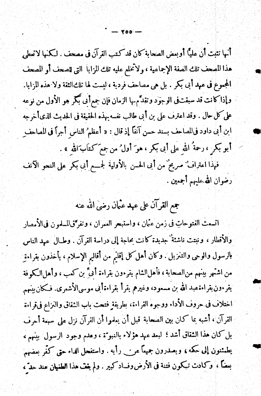 فهذا اعتراف صريح من أبي الحسن بالأولية لجمع أبي بكر على النحو الآنف رضوان الله عليهم أجمعين.