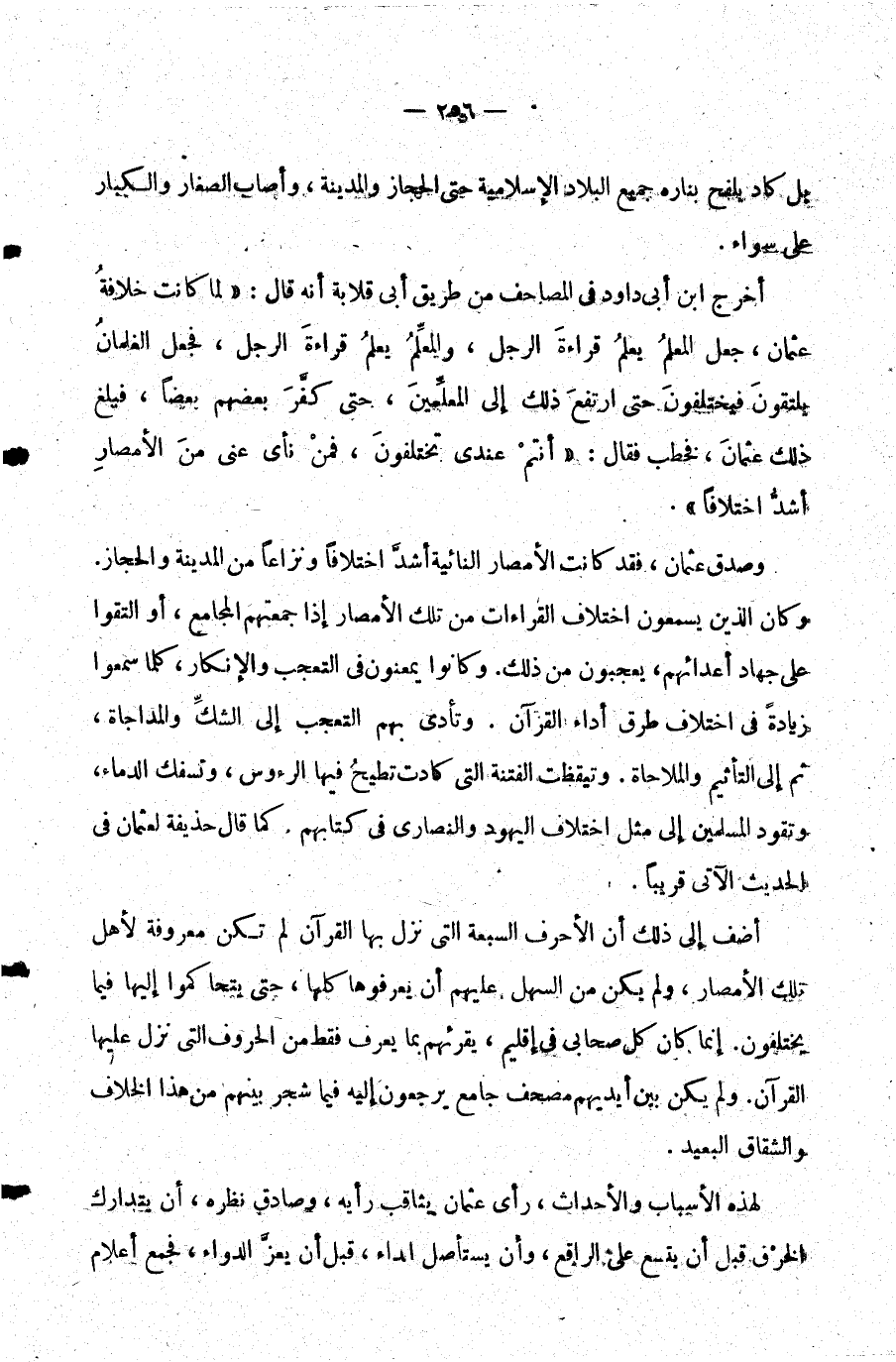 وصدق عثمان فقد كانت الأمصار النائية أشد اختلافا ونزاعا من المدينة والحجاز. وكان الذين يسمعون اختلاف القراءات من تلك الأمصار إذا جمعتهم المجامع أو التقوا على جهاد أعدائهم يعجبون من ذلك