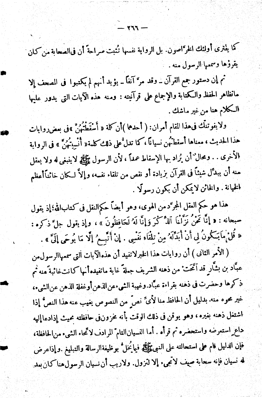 هذا هو حكم العقل المجرد من الهوى وهو أيضا حكم النقل في كتاب الله إذ يقول سبحانه: {إِنَّا نَحْنُ نَزَّلْنَا الذِّكْرَ وَإِنَّا لَهُ لَحَافِظُونَ} وإذ يقول جل ذكره: {قُلْ مَا يَكُونُ لِي أَنْ أُبَدِّلَهُ مِنْ تِلْقَاءِ نَفْسِي إِنْ أَتَّبِعُ إِلَّا مَا يُوحَى إِلَيَّ} .