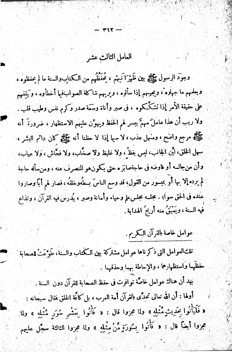 أولها: أن الله تعالى تحدى بالقرآن أمة العرب بل كافة الخلق فقال سبحانه: {فَلْيَأْتُوا بِحَدِيثٍ مِثْلِهِ} ولما عجزوا قال: {قُلْ فَأْتُوا بِعَشْرِ سُوَرٍ مِثْلِهِ} ولما عجزوا أيضا قال: {فَأْتُوا بِسُورَةٍ مِّنْ مِثْلِهِ} ولما عجزوا الثالثة سجل عليهم