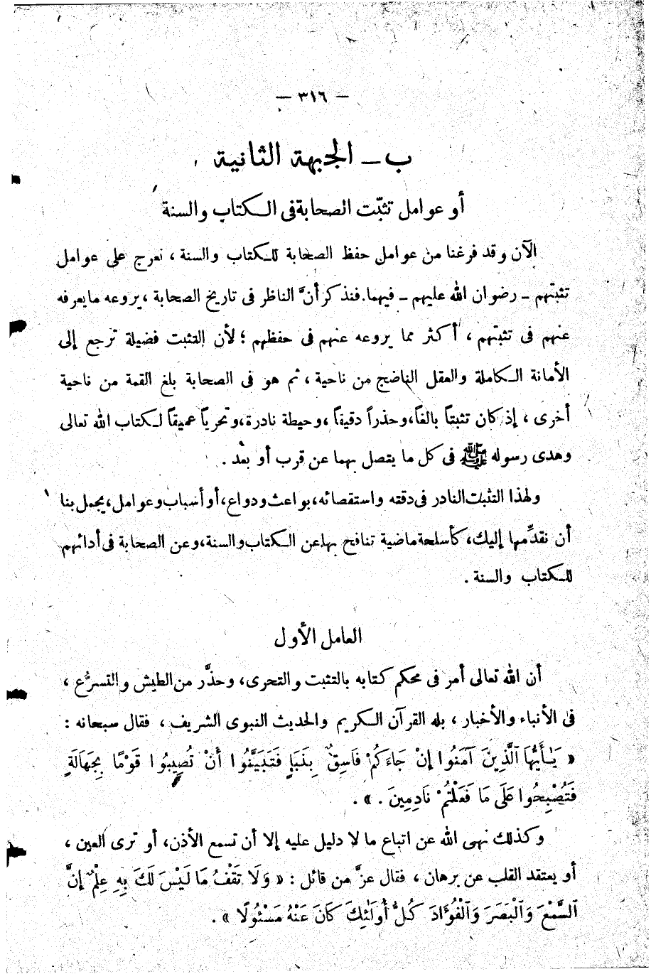 ولهذا التثبت النادر في دقته واستقصائه بواعث ودواع أو أسباب وعوامل يجمل بنا أن نقدمها إليك كأسلحة ماضية تنافح بها عن الكتاب والسنة وعن الصحابة في أدائهم للكتاب والسنة.