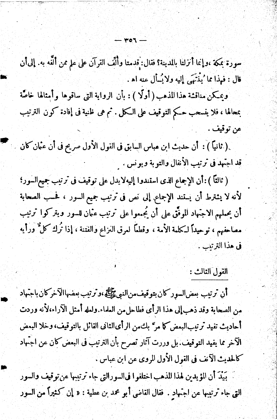 ثانيا: أن حديث ابن عباس السابق في القول الأول صريح في أن عثمان كان قد اجتهد في ترتيب الأنفال والتوبة ويونس.