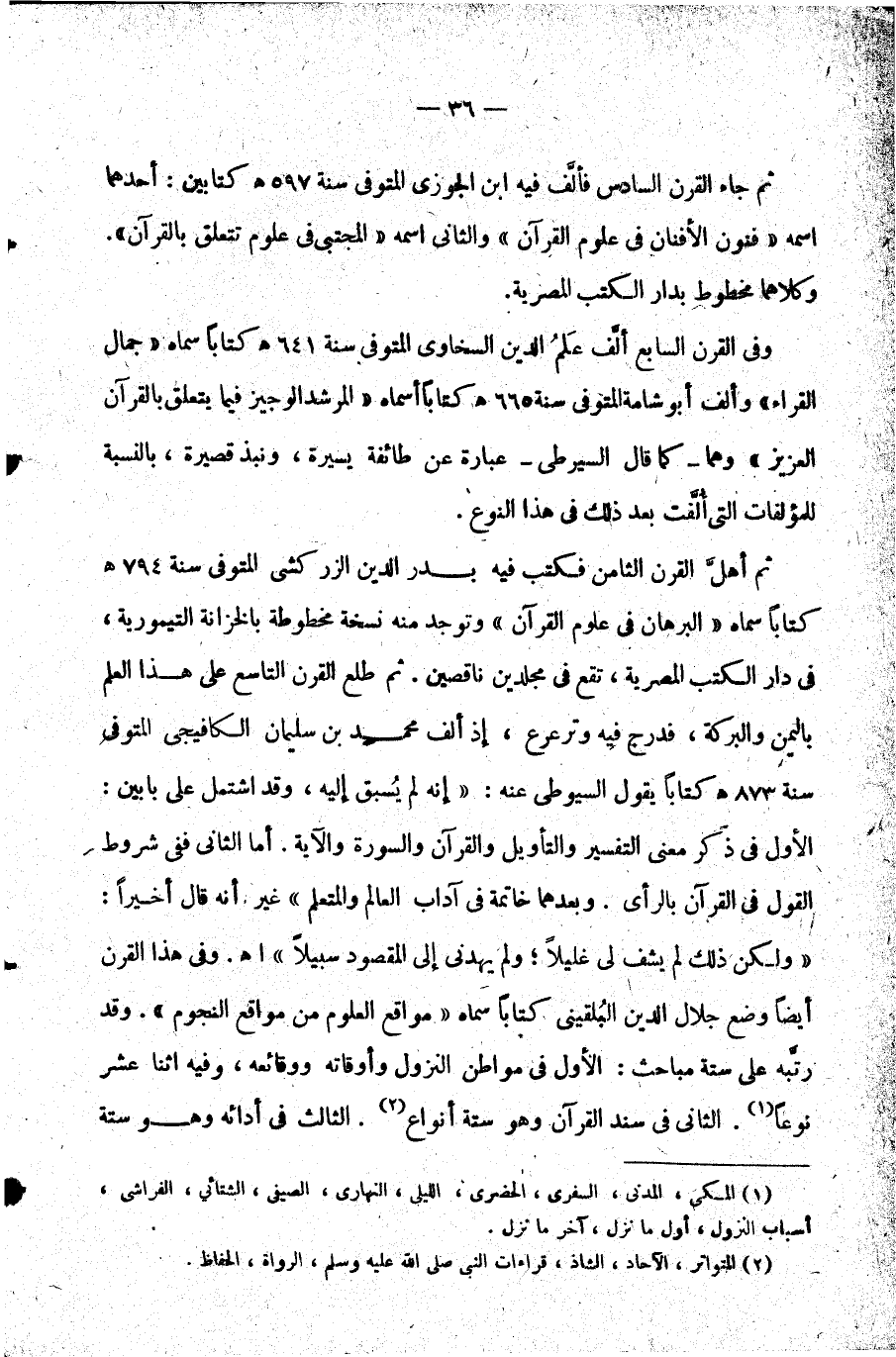 1 المكي، المدني، السفري، الحضري، الليلي، النهاري، الصيفي، الشتائي، الفراشي، أسباب النزول، أول ما نزل، آخر ما نزل.