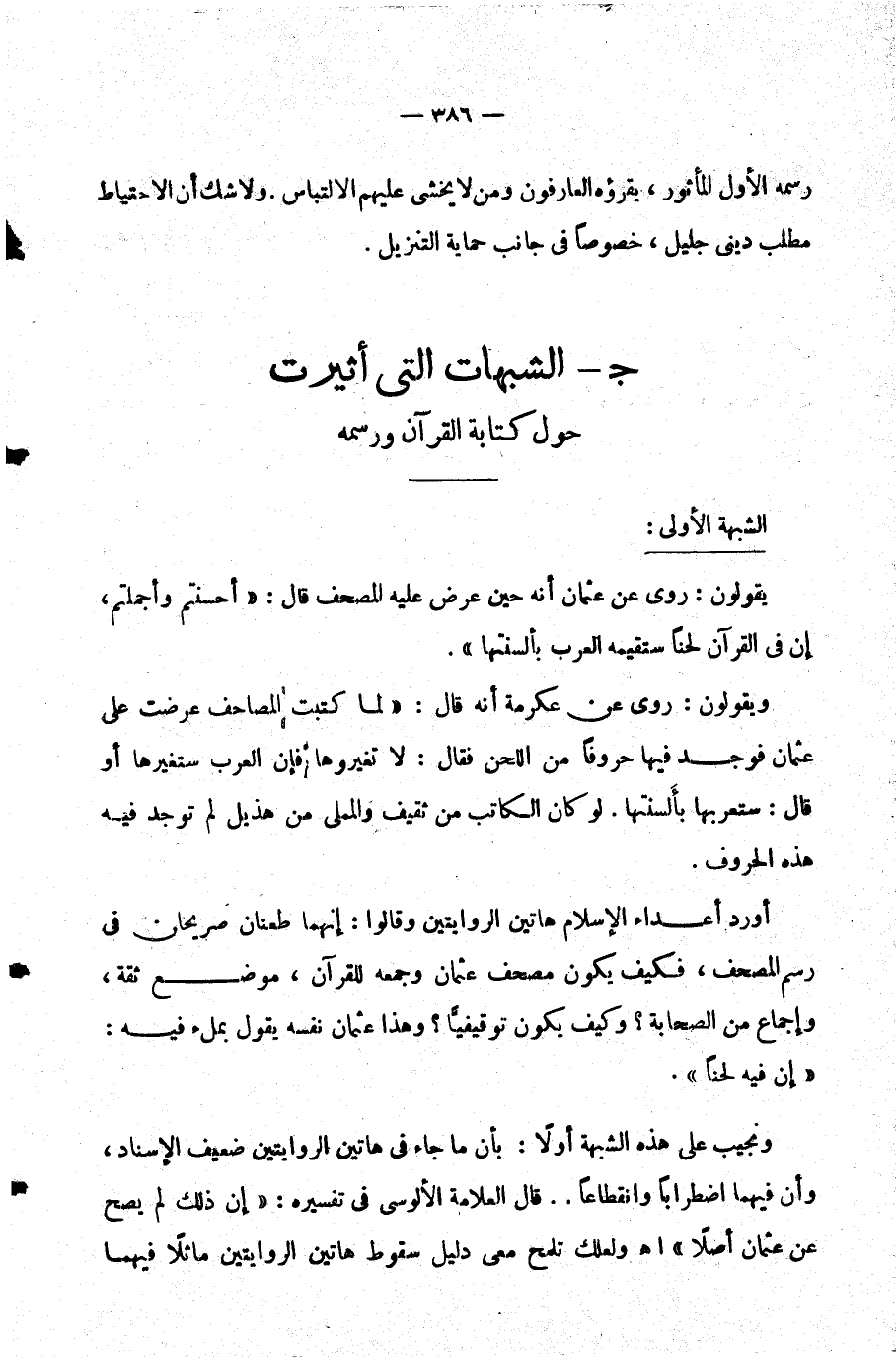 ج - الشبهات التي أثيرت حول كتابة القرآن ورسمه