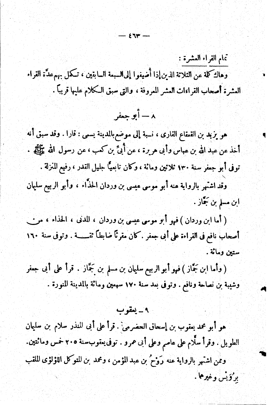 وهاك كلمة عن الثلاثة الذين إذا أضيفوا إلى السبعة السابقين تكمل بهم عدة القراء العشرة أصحاب القراءات العشر المعروفة والتي سبق الكلام عليها قريبا.