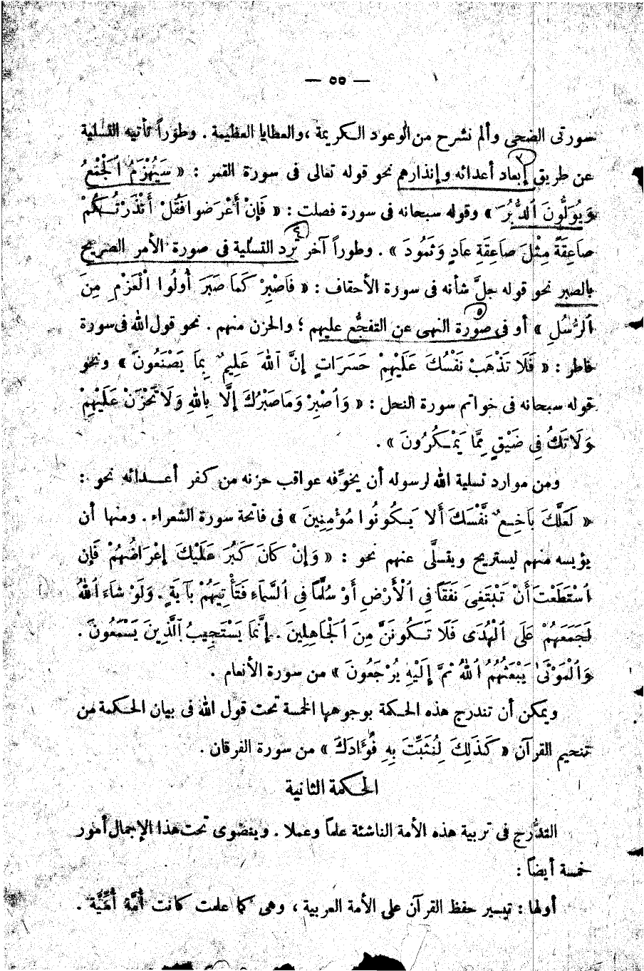 ويمكن أن تندرج هذه الحكمة بوجوهها الخمسة تحت قول الله في بيان الحكمة من تنجيم القرآن {كَذَلِكَ لِنُثَبِّتَ بِهِ فُؤَادَكَ وَرَتَّلْنَاهُ تَرْتِيلاً} من سورة الفرقان.