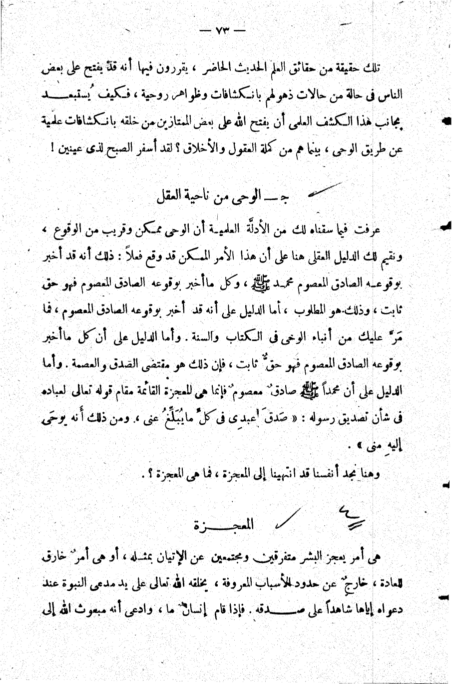 تلك حقيقة من حقائق العلم الحديث الحاضر يقررون فيها أنه قد يفتح على بعض الناس في حالة من حالات ذهولهم بانكشافات وظواهر روحية فكيف يستبعد بجانب هذا الكشف العلمي أن يفتح الله على بعض الممتازين من خلقه بانكشافات علمية عن طريق الوحي بينما هم من كملة العقول والأخلاق لقد أسفر الصبح لذي عينين.